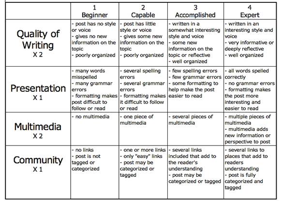rubrics. They communicate expectations of quality and content. The development of a rubric is crucial.