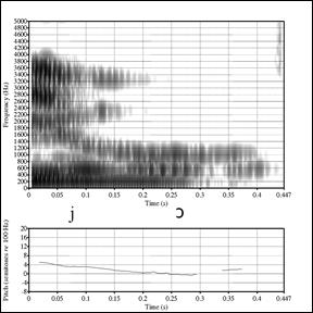 показатели основного тона по сравнению с подготовленной речью. Перцептивный анализ также показал, что слог был монофтонгизирован, так